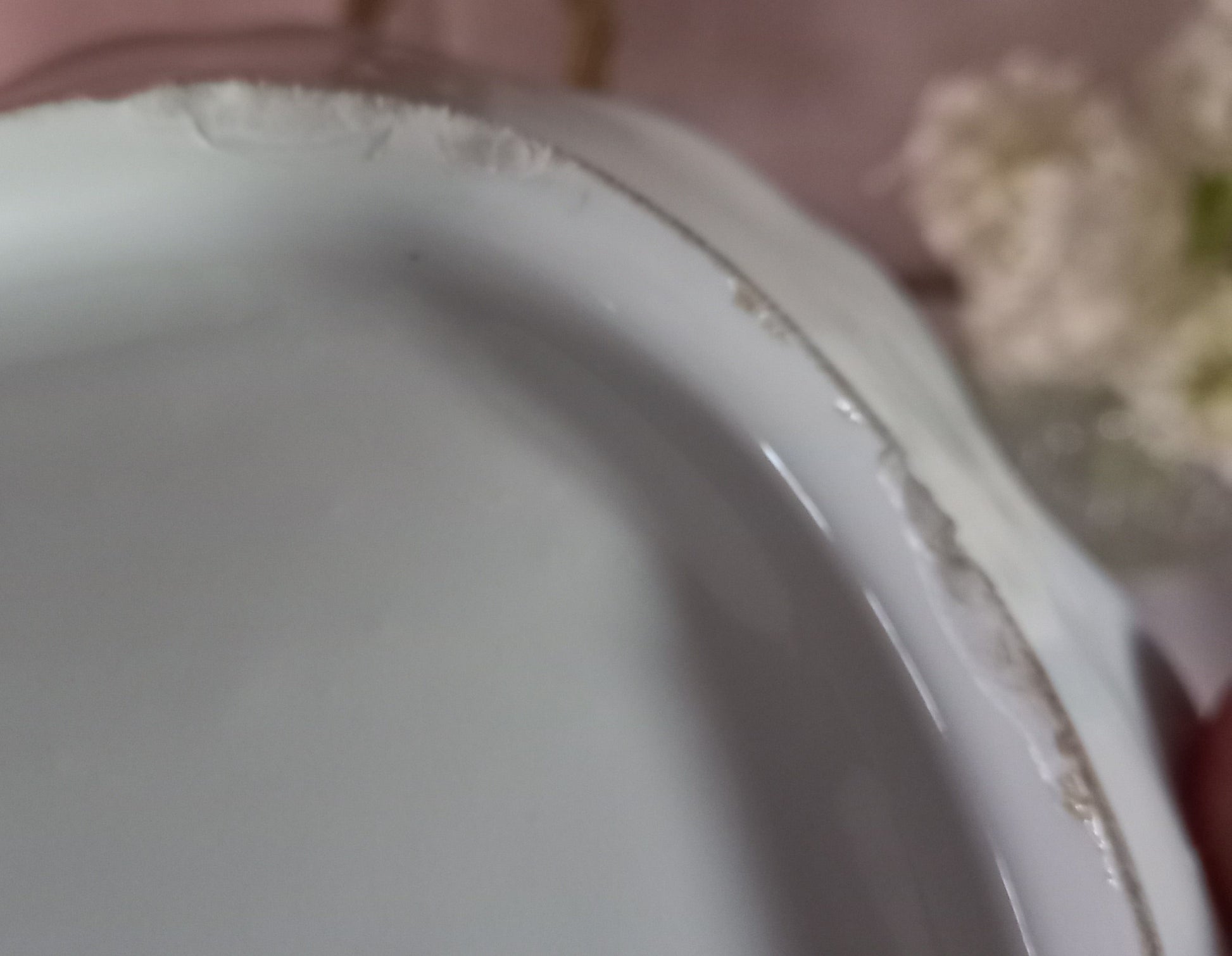 Gilding remains bright, glaze retains its luminous clarity, pattern remains beautifully fresh. No cracks, repairs, or structural damage observed — some light damage to foot of the heart foot rim (see pictures) an elegant and display-worthy suite.