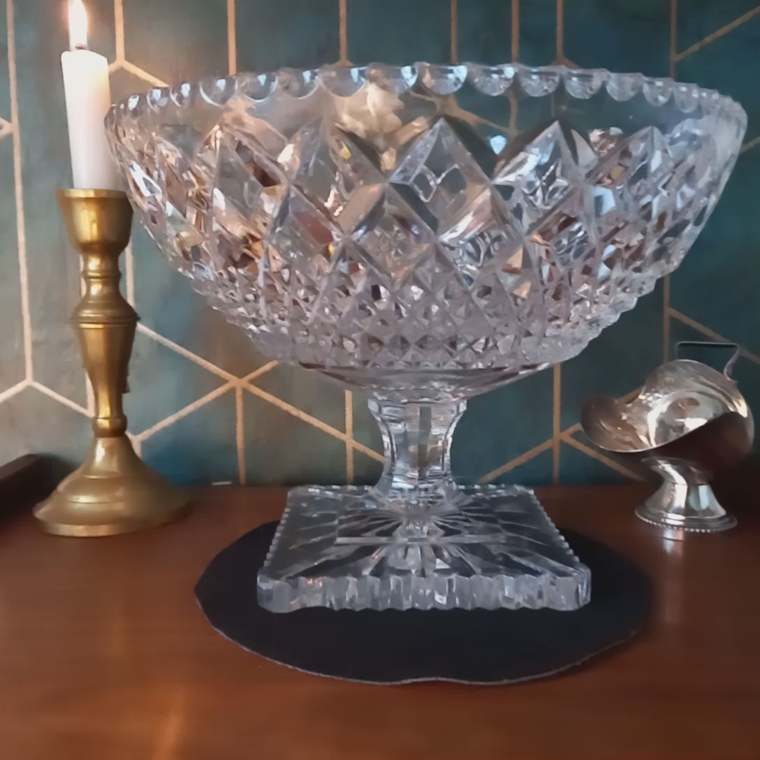 Vintage Cut Crystal Pedestal Trifle Bowl – Art Deco Diamond Design | Candlelit Elegance